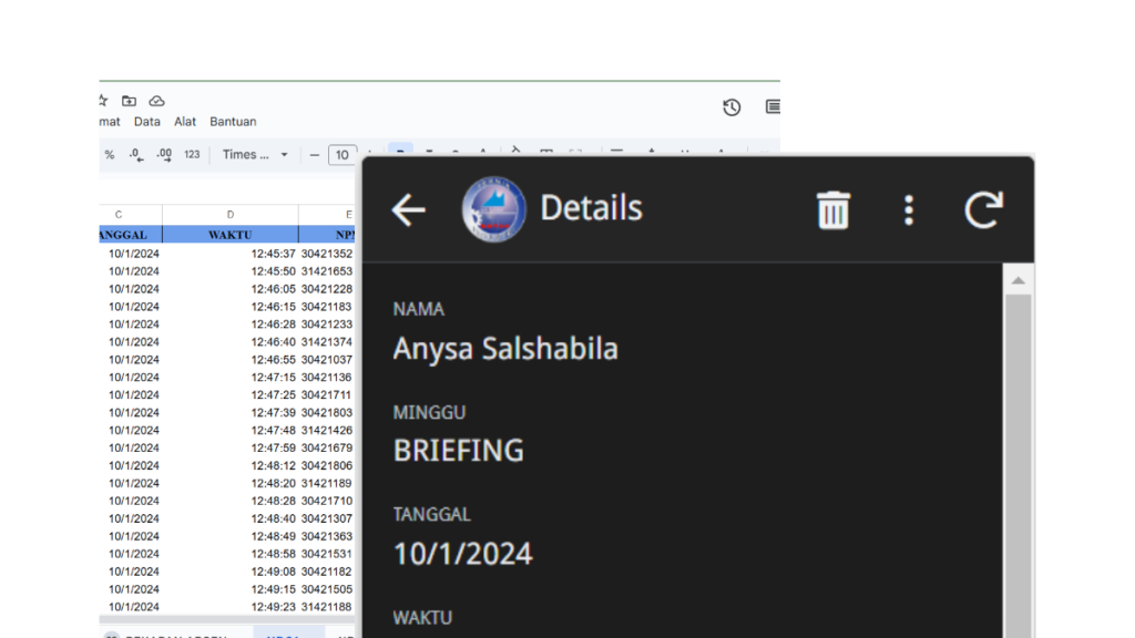 The integration of the attendance database and AppSheet is a system designed to make attendance automatic and time-efficient by scanning through the AppSheet application, directly connected to the database. The goal is to prevent data manipulation and improve efficiency.