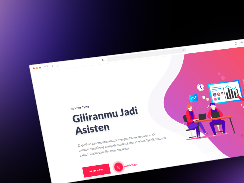 The Open Recruitment Website is a platform used to inform about job vacancies for industrial engineering laboratory assistants and allows candidates to submit their applications directly through the provided website. The features include a registration form, a timeline of the open recruitment process, and branding elements.